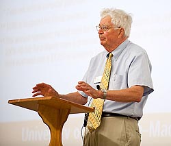 Douma, director emeritus of the UW–Madison financial aid office, retired in 1994 after his 30-year tenure. But he has continued speaking to parents of incoming freshmen at Student Orientation, Advising and Registration (SOAR) about student finances for 15 summers after his official retirement.