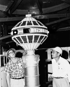 A full-scale model of the Explorer 7 satellite, which will be on display at a celebration of the 50th anniversary of its launch on Oct. 13, 1959.