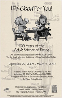 “It’s Good for You: 100 Years of the Art and Science of Eating” is on display through March 31 at the Ebling Library.