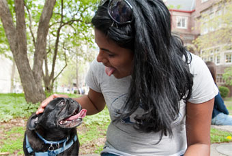 "Pet therapy has been shown to reduce stress and anxiety, lower blood pressure and lift moods," says UHS psychologist Bob McGrath. "It also gives students a chance to take a breather, and spend time with a dog offering genuine affection."