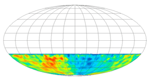 Abbasi saw an unusual pattern when she looked at a "skymap" of the relative intensity of cosmic rays directed toward the Earth's Southern Hemisphere, with an excess of cosmic rays detected in one part of the sky and a deficit in another. A similar lopsidedness, called "anisotropy," has been seen from the Northern Hemisphere by previous experiments, she says, but its source is still a mystery.