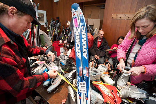 People shop for bargains on new and used cross-country ski boots and related gear during first day of the two-day Hoofers 47th Annual Ski and Snowboard Resale at the Memorial Union on Dec, 4, 2010.