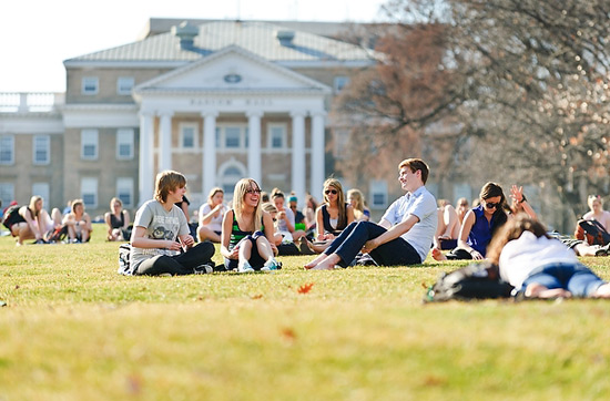 Students took in the unseasonably warm weather by relaxing on Bascom Hill in mid-March. In a string of days that hit the 70s and 80s — and shattered high temperature records — summer seemed to be arriving early. The campus community celebrated by enjoying the great outdoors; even the Wisconsin Union’s famous Terrace chairs came out of hiding early.
