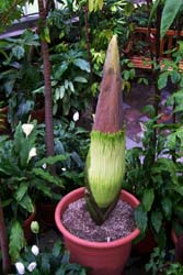 Caption: A rare and malodorous flowering plant that blooms only two or three times during an average 40-year life span, the Titan Arum or "corpse flower" (center) is expected to bloom within the next week in the UW-Madison Botany Greenhouses.
